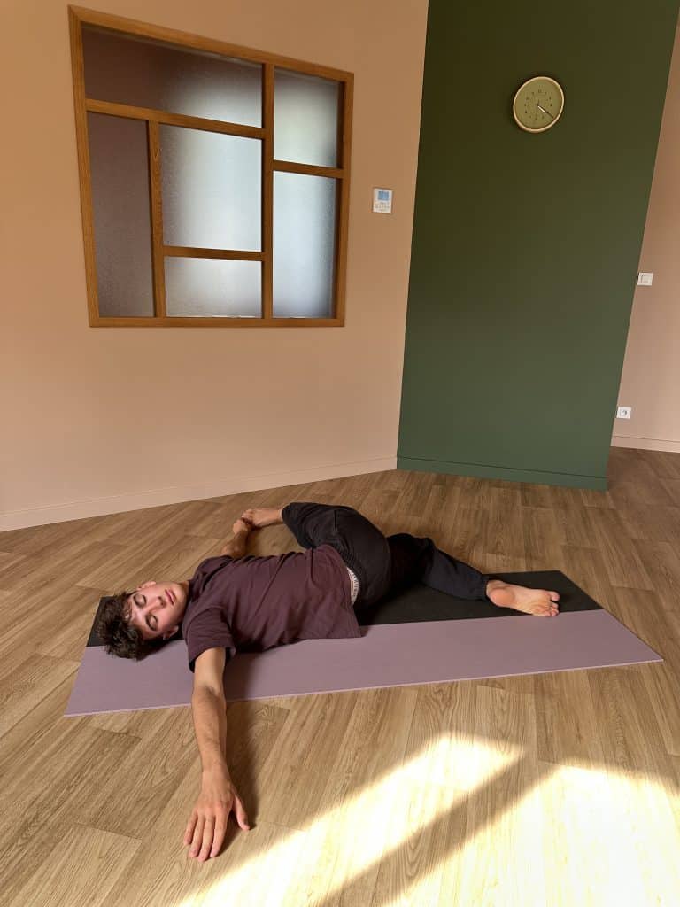 Cette salle de pratique est située au premier étage de ma maison, c’est un espace de 50m2 entièrement dédié à la pratique du yoga avec un vestiaire. Pour votre confort et afin d’être pleinement présente et disponible à chacun.e d’entre vous, les séances accueillent 13 personnes maximum.